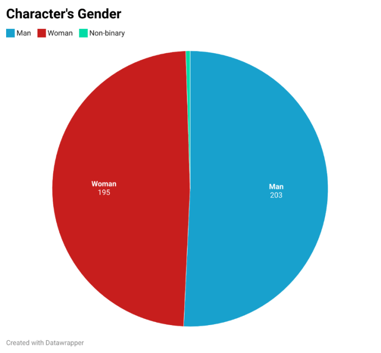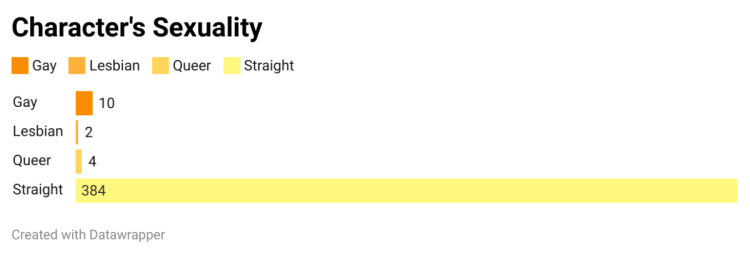 96% of the characters were straight, 2.5% were gay, 1% were queer and 0.5% were lesbians.